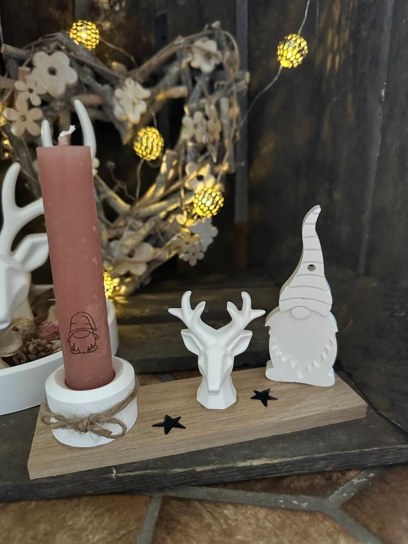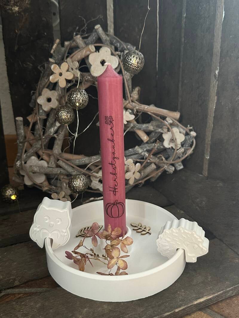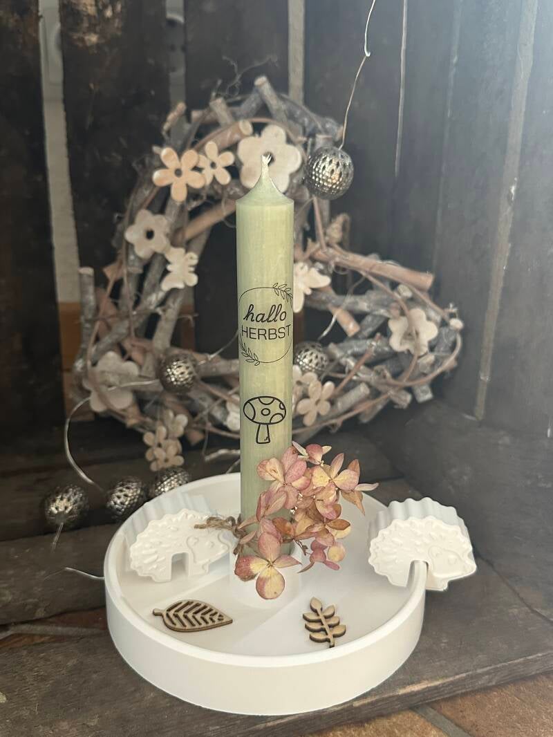 Stabkerzenteller rund mit 2 Kantenhockern und Kerze, 14,00€