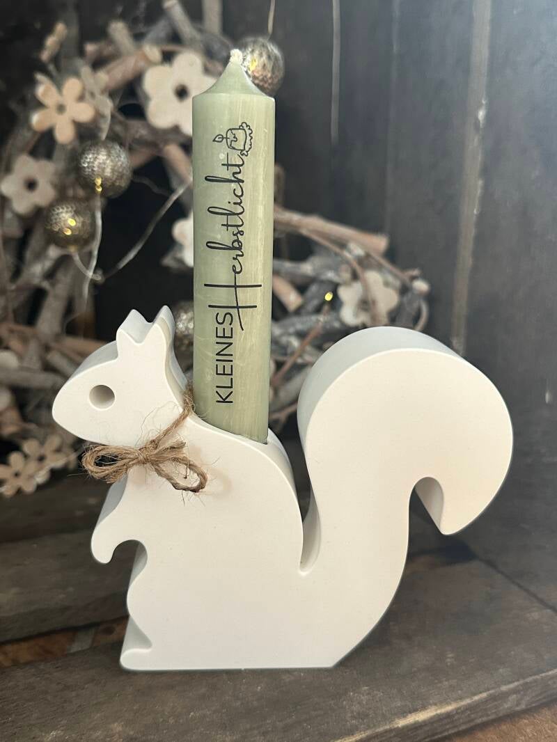 Eichhörnchen-Kerzenhalter, H. ca. 10cm, B. ca. 12cm, mit Kerze, 12,00€